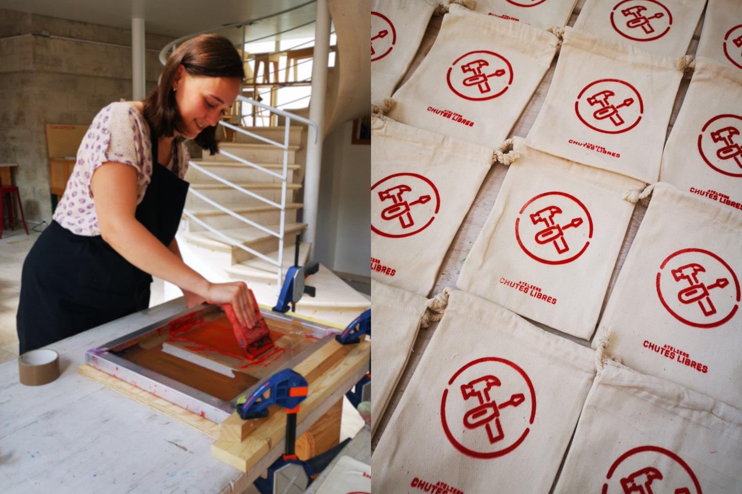 Les Ateliers Chutes Libres, gérés par l'agence Premices and co, permettent aux parisiens de réaliser des petits projets de bricolage à l'aide de chutes de bois sauvés de la benne. Lors d'un stage, j'ai contribué à la sérigraphie des pochons cadeau pour offrir un atelier et participé à un atelier team building en tant qu'encadrante.