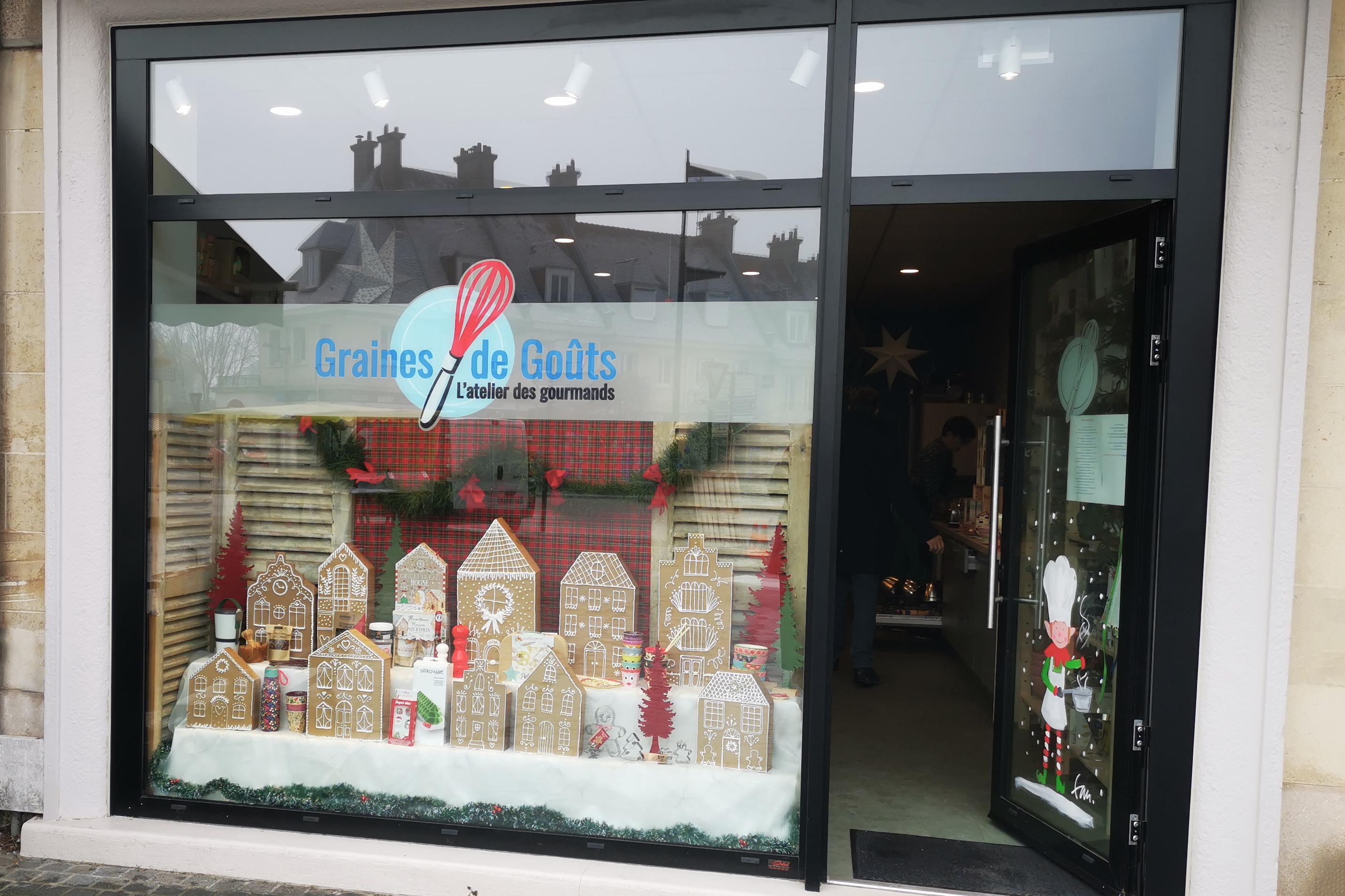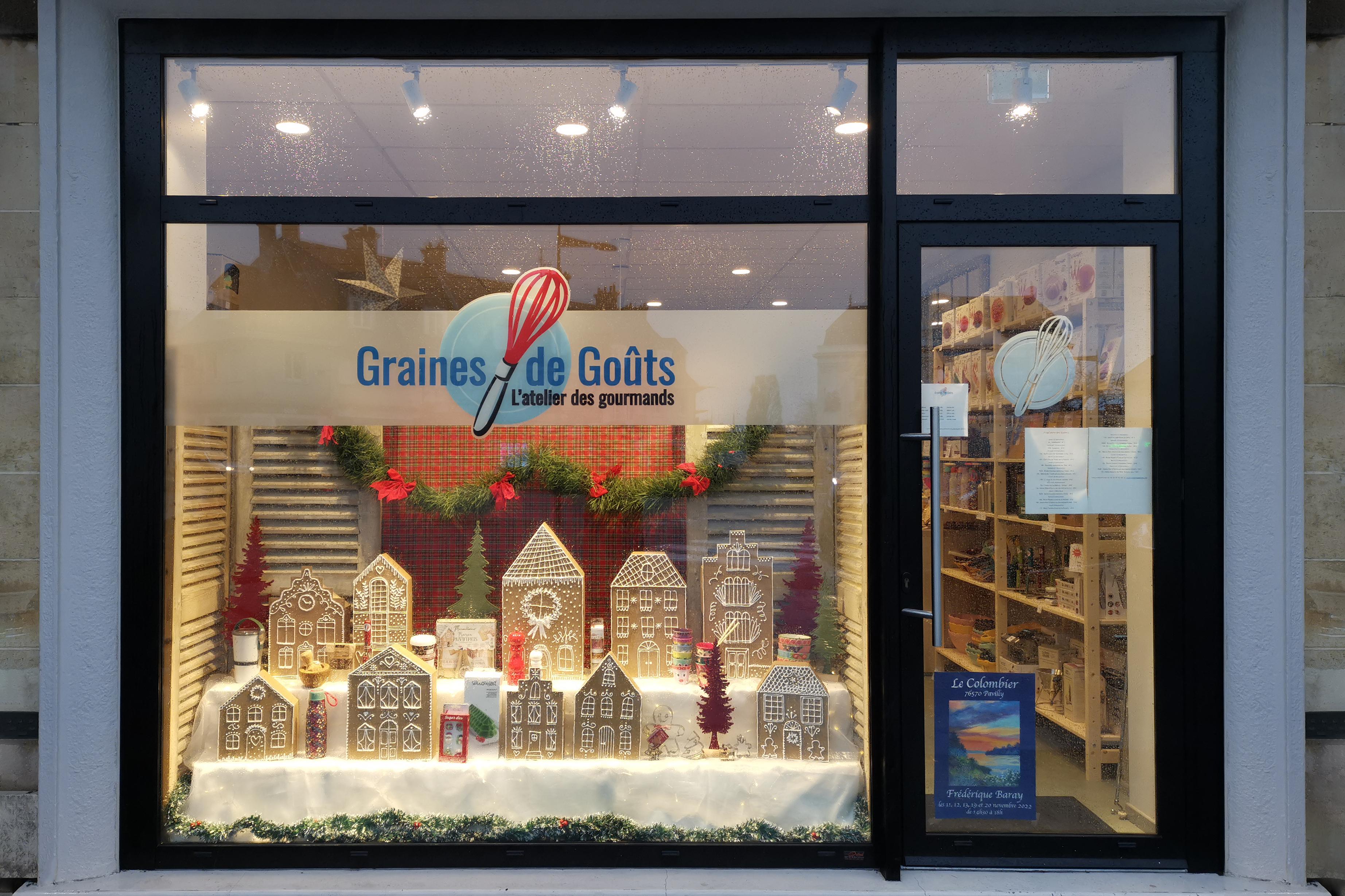 Création de la vitrine de Noël 2022 de l'atelier culinaire Graines de Goûts.