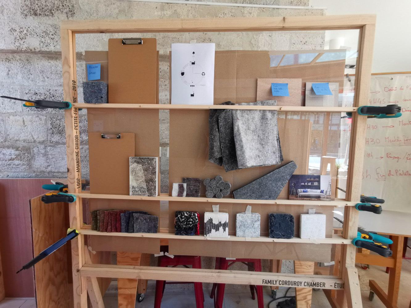 Ma mission à également portée sur le prototypage, la fabrication et l'agencement de la scénographie pour la présentation du matériau aux Ateliers de Paris en septembre 2020 lors de la Design Week.