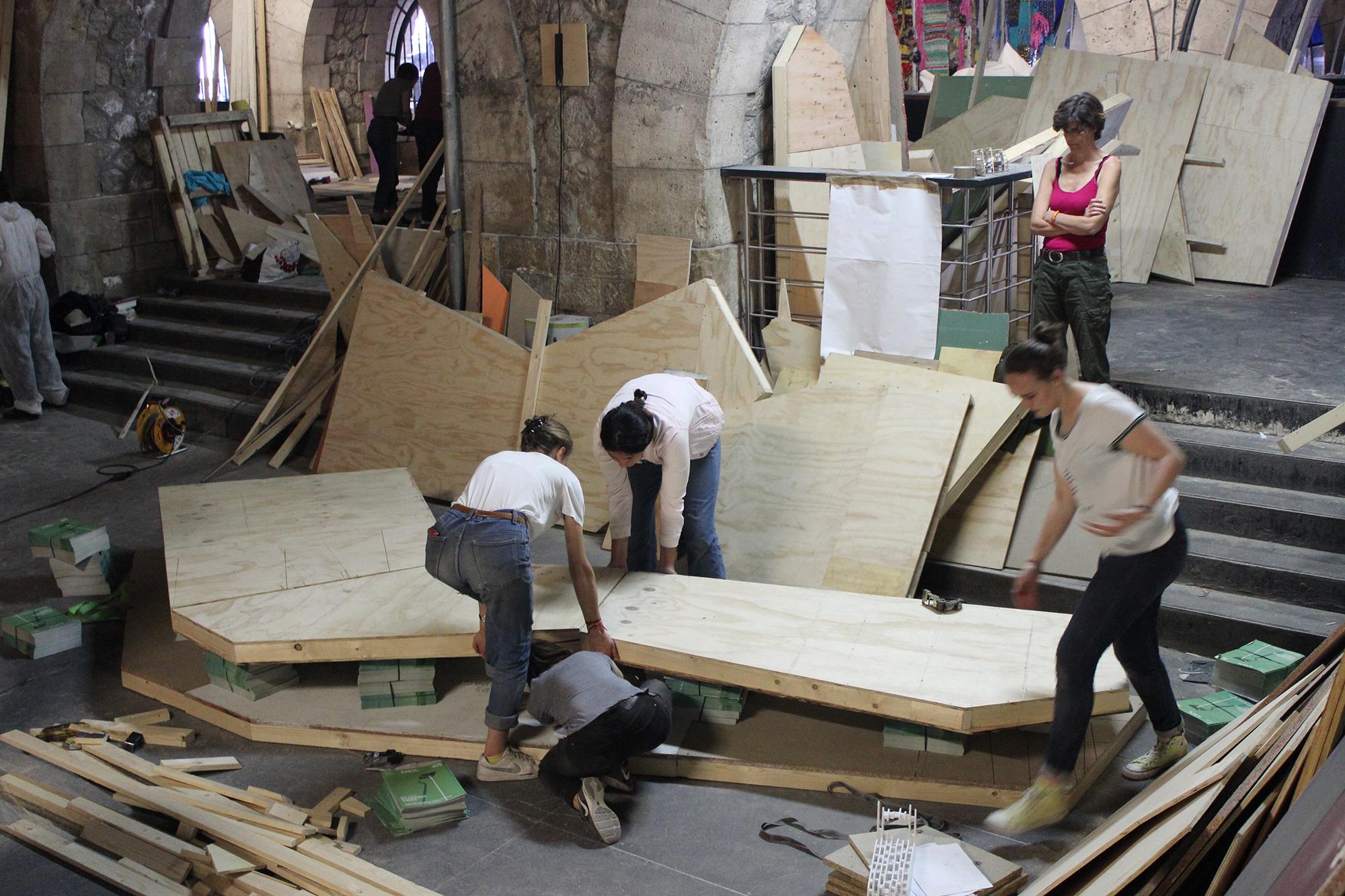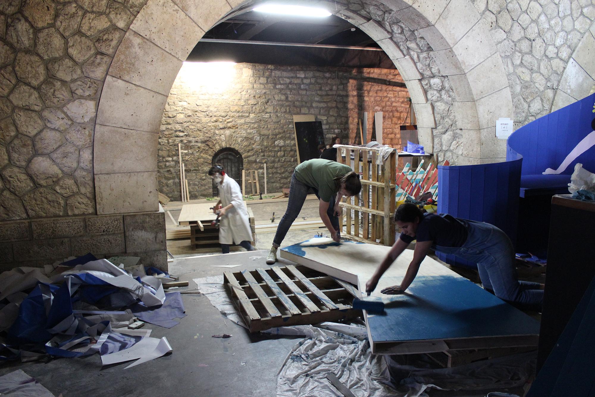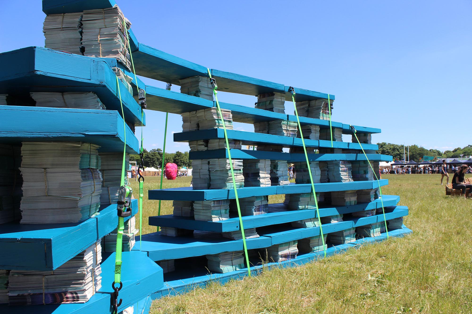 Conception et fabrication d'un meuble espace pour le festival We Love Green.Le mot d'ordre : éco-conception ! Le seul achat de matière première neuve fut pour les sangles à cliquet.Projet sélectionné à la suite d'un appel à projet.